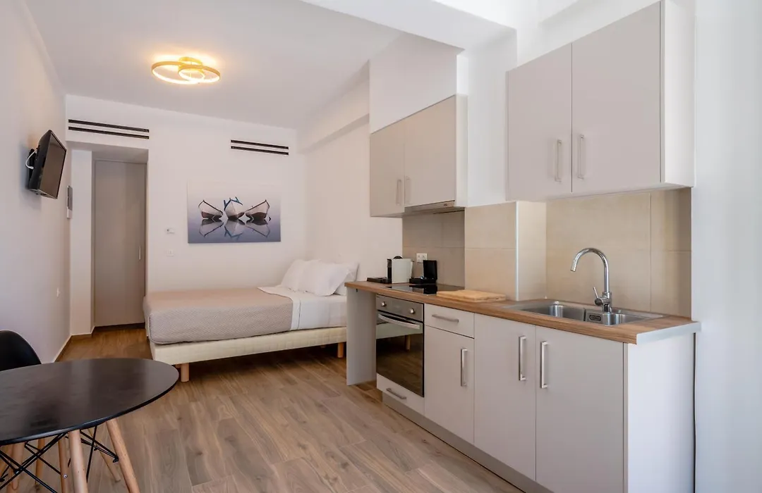 Die Apeiron Perissa Apartments verfügt über eine Küchenzeile mit einem Wasserkocher, einem Kühlschrank und Küchenutensilien. Das Apartment ist gleich neben der Bushaltestelle Bob's bar.
